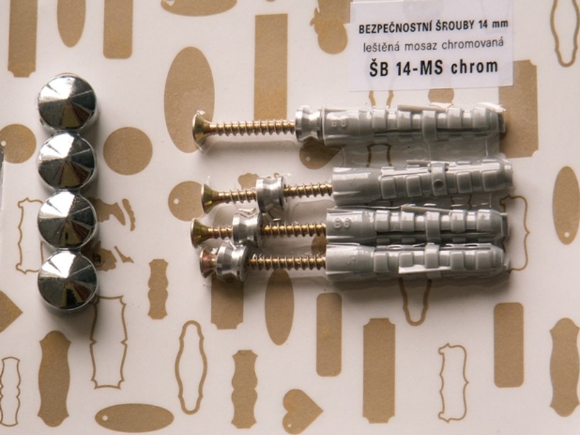 Pro snadné upevnění Vám štítek podlepíme oboustrannou lepicí páskou nebo doplníme dírky se šroubky, případně šroubky s bezpečnostní krytkou. (variantu vyberte)