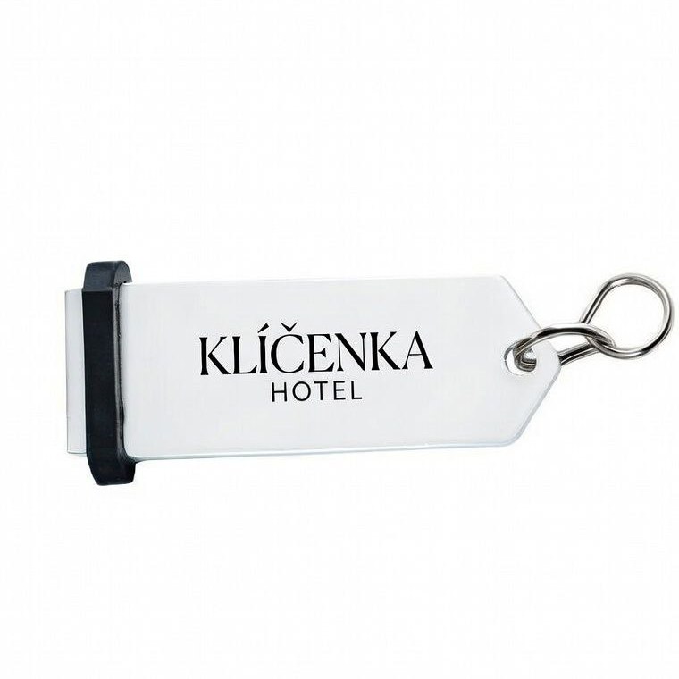 Velmi odolná luxusní duralová klíčenka ve stříbrné barvě s gumovým chráničem.